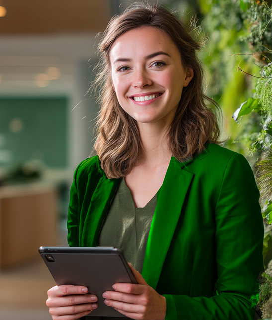 A APCER certifica o edifício URBO, no Porto com a ISO 50001 (gestão de energia) e a ISO 14001 (gestão ambiental) e o edifício Torre Ocidente, em Lisboa com a ISO 14001 (gestão ambiental). Além disso, desde 2020, temos vindo a registar uma redução significativa das emissões de CO2 por colaborador.